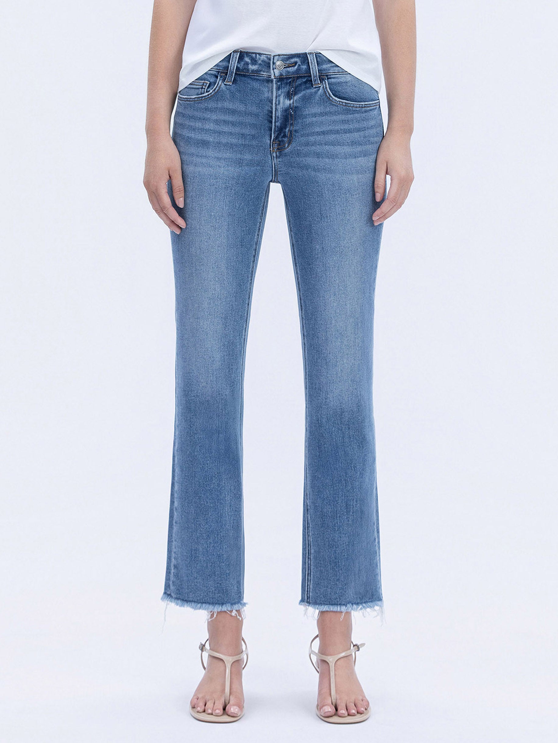 MID RISE RAW HEM CROP STRAIGHT JEANS